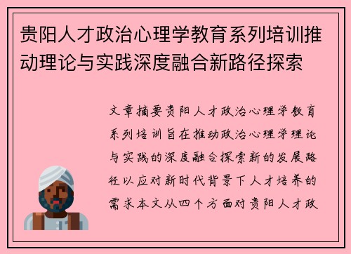文章摘要:贵阳人才政治心理学教育系列培训...