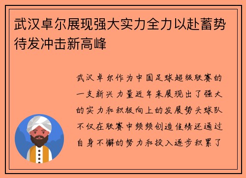 武汉卓尔,作为中国足球超级联赛的一支新兴...