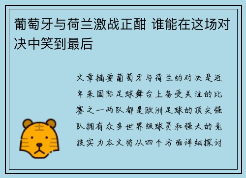 文章摘要:葡萄牙与荷兰的对决是近年来国际...