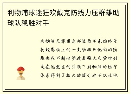 利物浦足球俱乐部近些年来,始终是英超赛场...