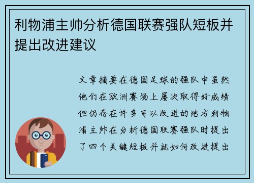 随着新赛季的临近,利物浦在防守端的挑战也...