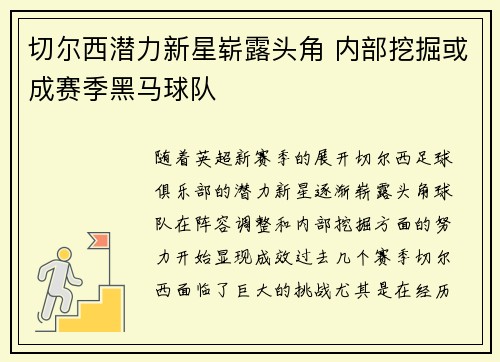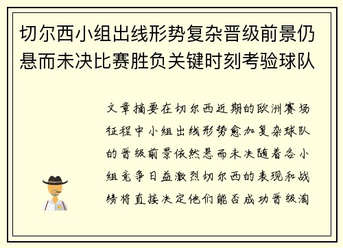 文章摘要:在切尔西近期的欧洲赛场征程中,...