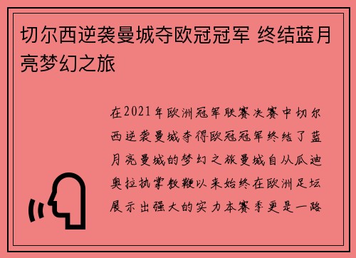 在2021年欧洲冠军联赛决赛中,切尔西逆...