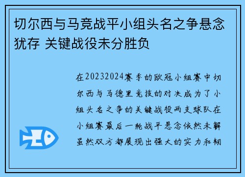 在这场比赛中,切尔西展现了其强大的整体实...