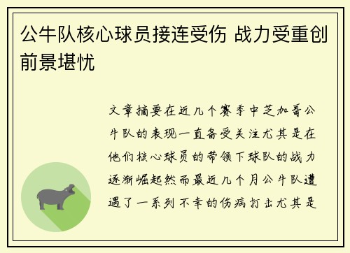 文章摘要:在近几个赛季中,芝加哥公牛队的...
