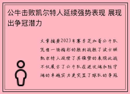 文章摘要:2023年赛季,芝加哥公牛队凭...