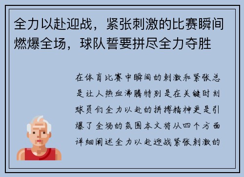 在体育比赛中,瞬间的刺激和紧张总是让人热...