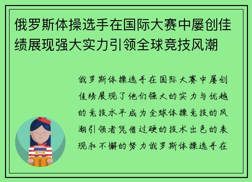 俄罗斯体操选手在国际大赛中屡创佳绩,展现...