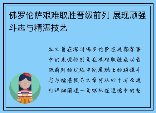 本文旨在探讨佛罗伦萨在近期赛事中的表现,...
