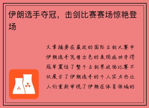 文章摘要:在最近的国际击剑大赛中,伊朗选...